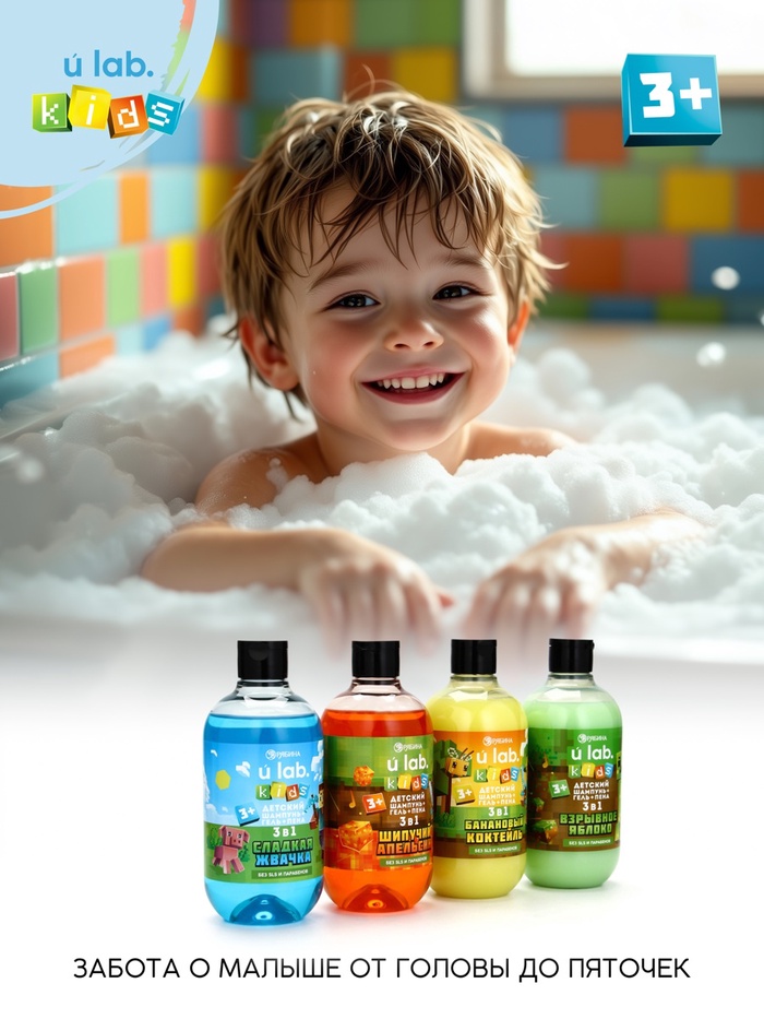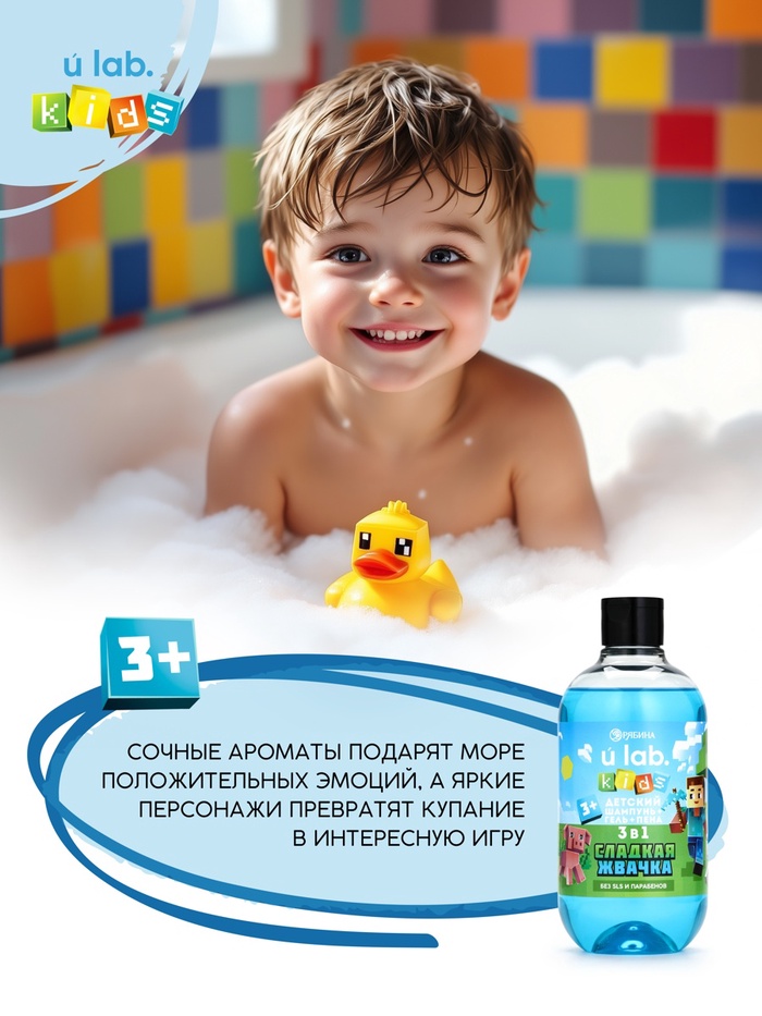 Детский шампунь-гель-пена 3в1 , аромат сладкая жвачка, 500 мл