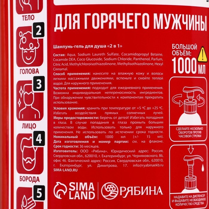 Гель для душа и шампунь для волос 2 в 1 «Средство тушения», мега объём 1000 мл