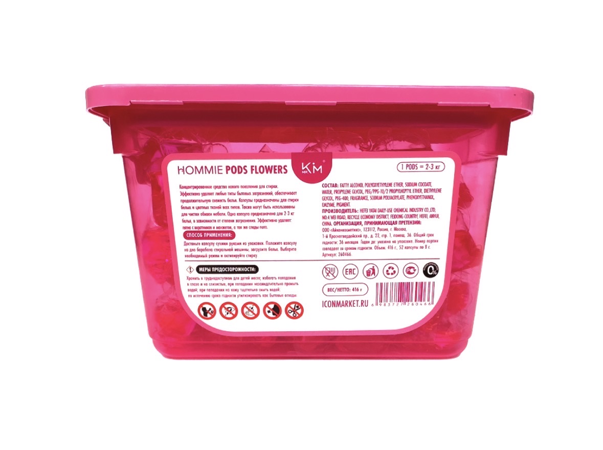 Концентрированное средство для стирки белья в растворимых капсулах с ароматом цветов