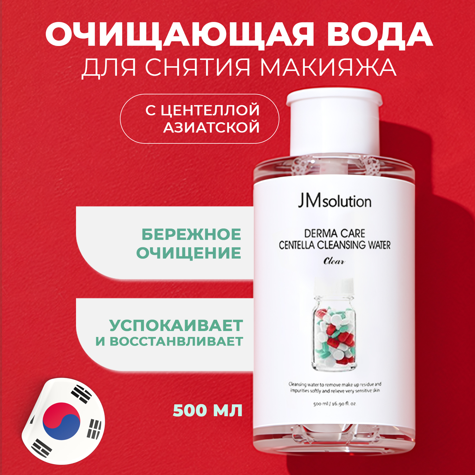 Очищающая вода с центеллой азиатской Jmsolution Derma Care Centella Cleansing Water Clear предназначена для снятия макияжа и деликатного устранения загрязнений. Обладает успокаивающим действием на кожу, снимает зуд и устраняет воспаления, регулирует работу сальных желез. Средство устраняет покраснения, стимулирует выработку коллагена и регенерирует клетки кожи. Обладает антибактериальными свойствами и уменьшает выраженность акне и постакне.